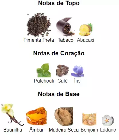 ✔ Notas de destaque: Baunilha, Fumaça, Pimenta Preta, Âmbar, Madeira Seca